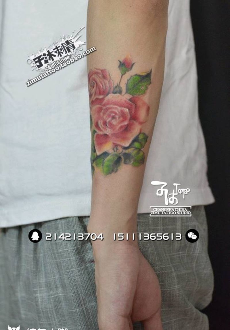 耗时不详 子沐一年前作品 稍润纹身图片_欧美清新植物原创成品纹身图案