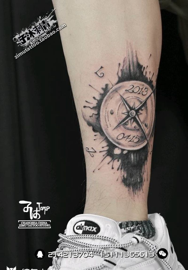 遮盖耗时2.2 泼墨指南针纹身图片_成品纹身图案