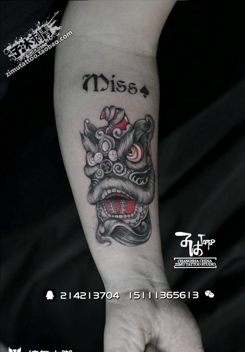 当前位置: 首页 >湖南省长沙市纹身店-子沐刺青艺术纹身工作室纹身图案>耗时2.6 醒狮纹身图片