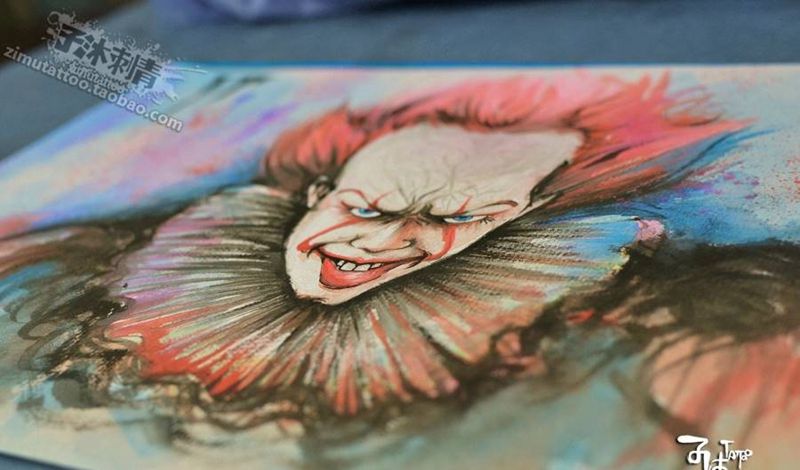 当前位置: 首页 >湖南省长沙市纹身店-子沐刺青艺术纹身工作室纹身图案>水彩画手稿涂鸦 IT 小丑纹身图片