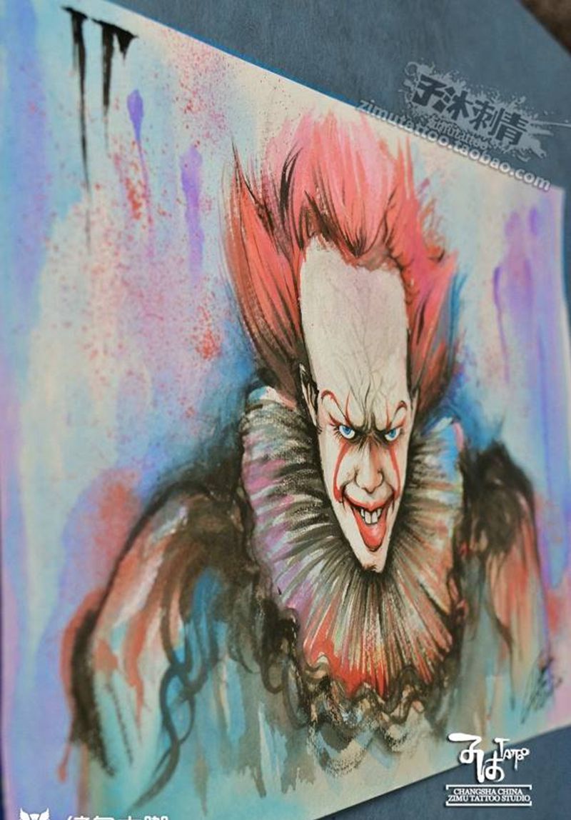 当前位置: 首页 >湖南省长沙市纹身店-子沐刺青艺术纹身工作室纹身图案>水彩画手稿涂鸦 IT 小丑纹身图片