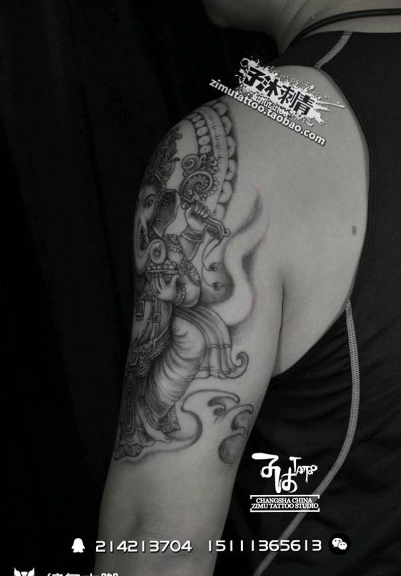 耗时9.0 象头神迦尼萨纹身图片