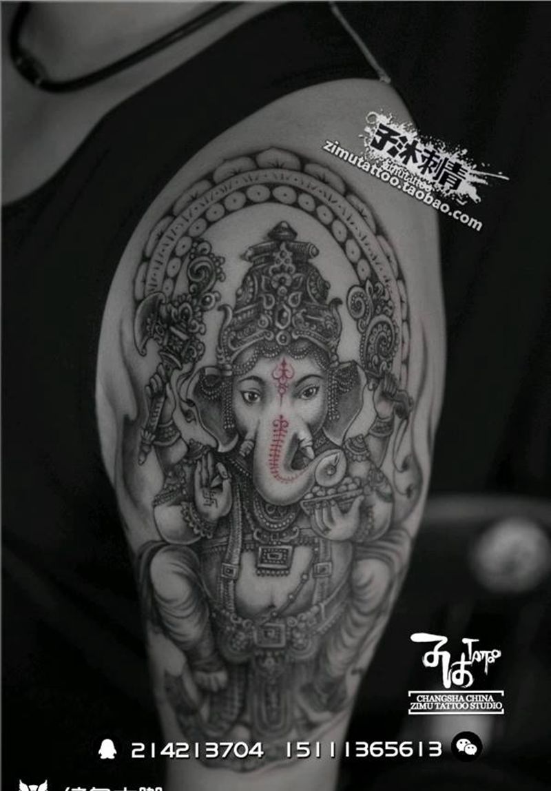 耗时9.0 象头神迦尼萨纹身图片