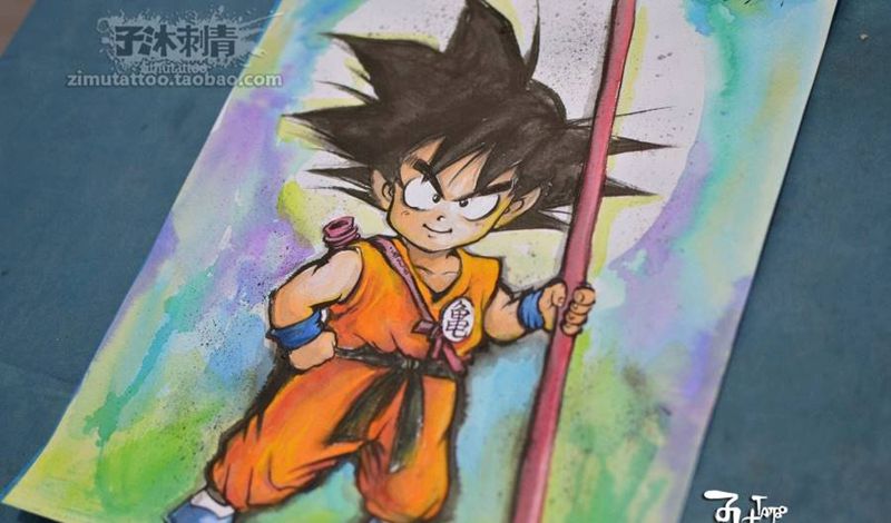 龙珠 水彩 悟空纹身图片