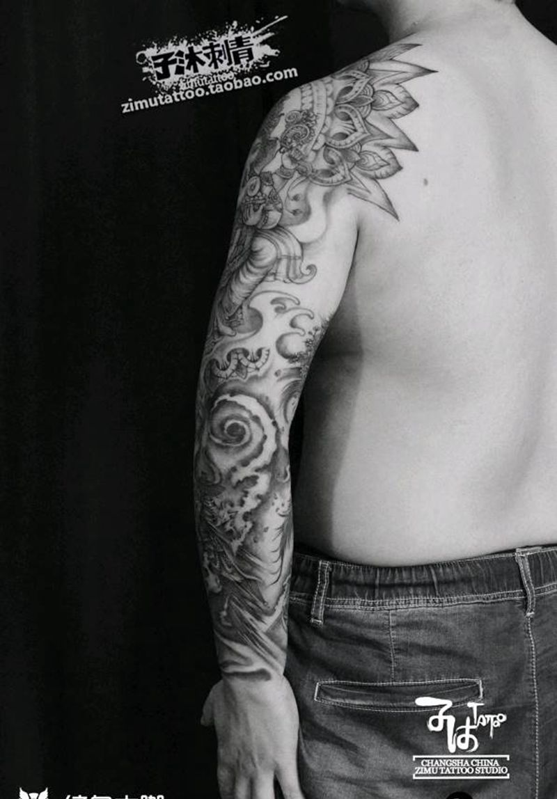 当前位置: 首页 >湖南省长沙市纹身店-子沐刺青艺术纹身工作室纹身图案>神 与 仙花臂最终版纹身图片