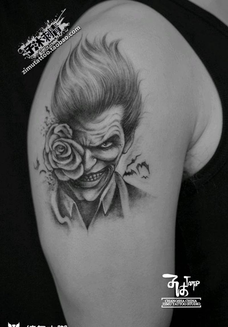 当前位置: 首页 >湖南省长沙市纹身店-子沐刺青艺术纹身工作室纹身图案>小丑男 玫瑰蝙蝠侠写实素描纹身图片_欧美写实纹身图案