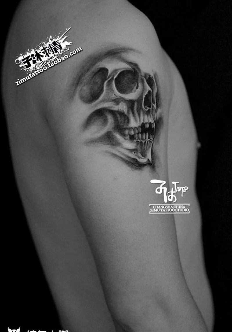 当前位置: 首页 >湖南省长沙市纹身店-子沐刺青艺术纹身工作室纹身图案>头骨骷髅的纯粹 黑灰写实纹身图片_成品纹身图案