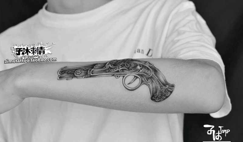 当前位置: 首页 >湖南省长沙市纹身店-子沐刺青艺术纹身工作室纹身图案>小臂 复古手枪纹身图片
