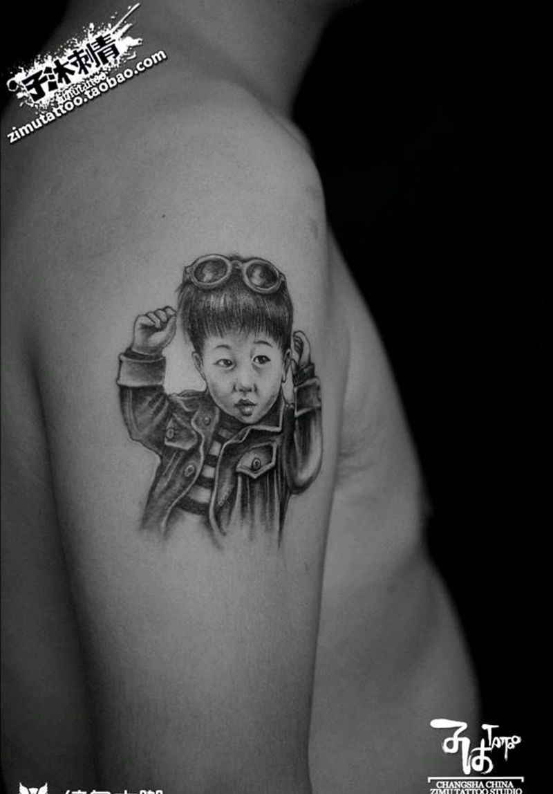 小朋友 素描 耗时2.1纹身图片_手臂欧美写实纹身图案