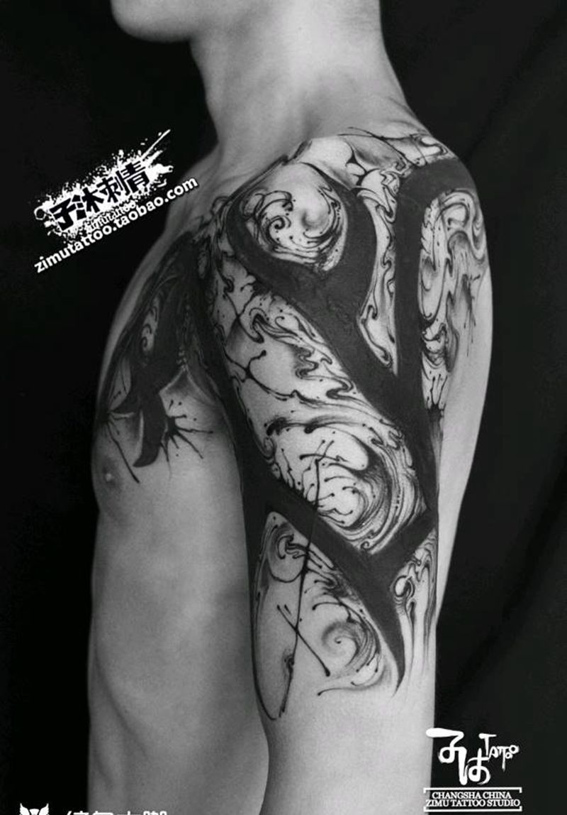 当前位置: 首页 >湖南省长沙市纹身店-子沐刺青艺术纹身工作室纹身图案>泼墨抽象中国风纹身图片