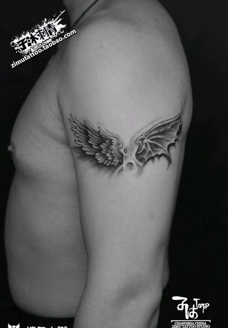 当前位置: 首页 >湖南省长沙市纹身店-子沐刺青艺术纹身工作室纹身图案>翅膀天使恶魔纹身图片_手臂纹身图案