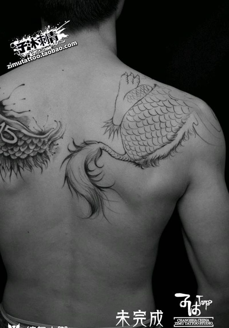 • 纹身吧推荐的披肩图腾半胛纹身图案作品展示