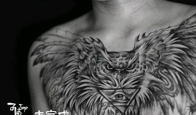 遮盖修改纹身图片_胸部欧美写实水墨纹身图案