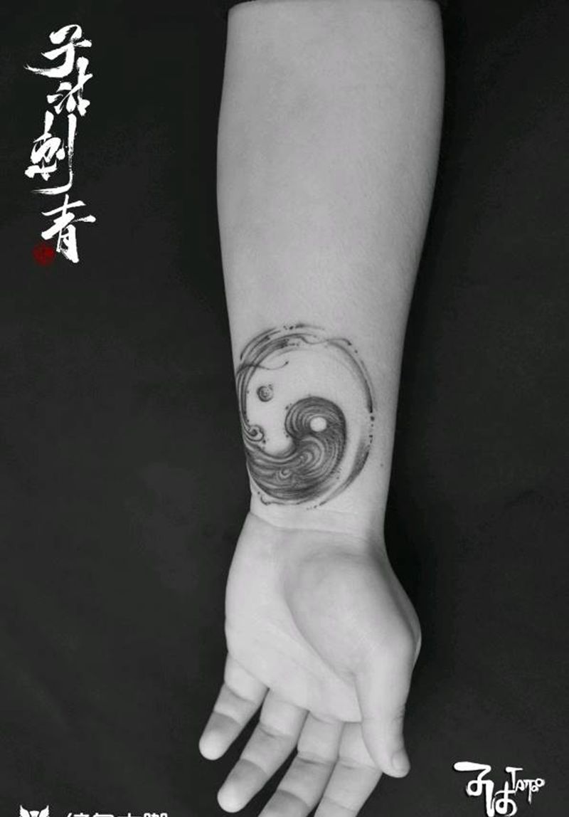 太极泼墨遮盖手腕纹身图片_水墨纹身图案