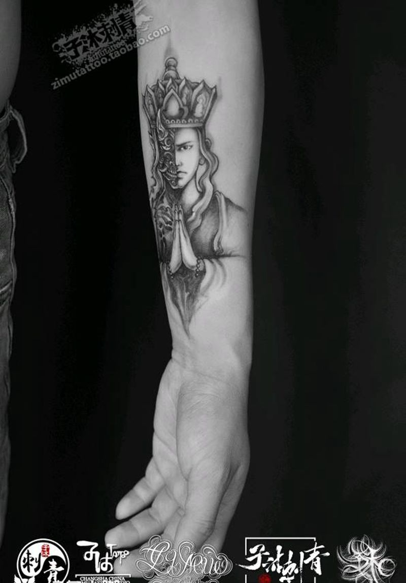 一念之间 成佛成魔 善恶合一纹身图片_手臂新传统纹身图案
