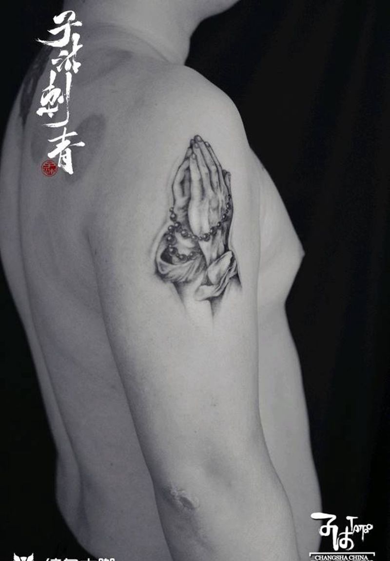 祈祷之手 经典信仰宗教纹身图片_欧美写实纹身图案