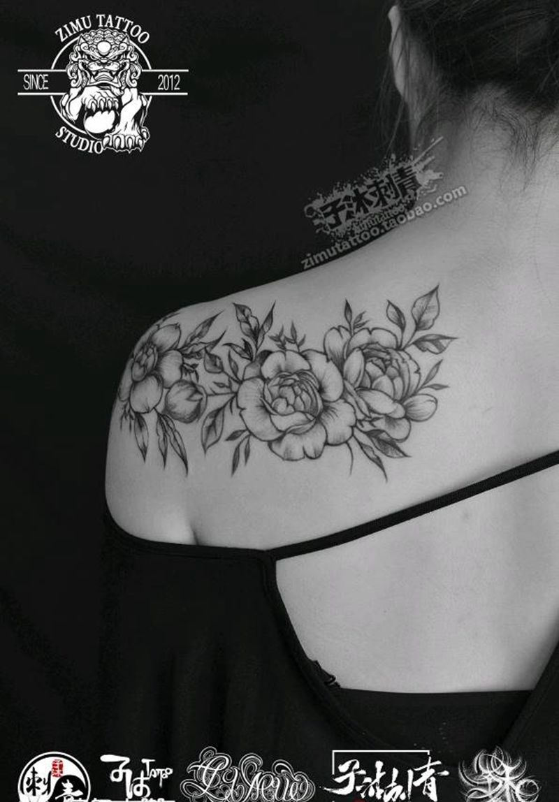 素花肩膀前后纹身图片_肩部几何纹身图案