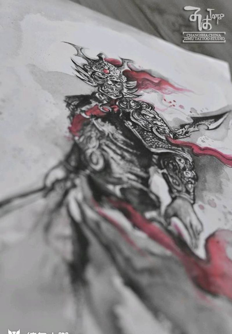 当前位置: 首页 >湖南省长沙市纹身店-子沐刺青艺术纹身工作室纹身图案>我的水墨手稿战将武士鬼面纹身图片_水墨新传统纹身图案
