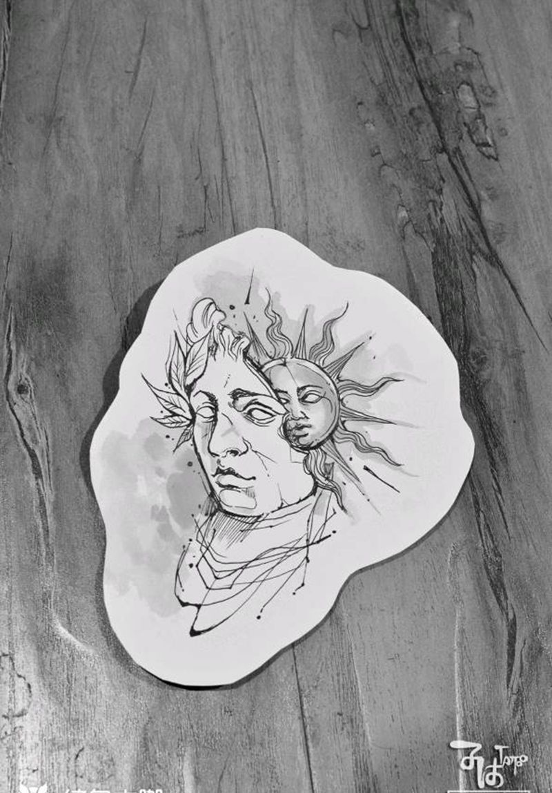 当前位置: 首页 >湖南省长沙市纹身店-子沐刺青艺术纹身工作室纹身图案>阿波罗太阳神罗马石膏像抽象希腊纹身图片_水彩New School纹身图案