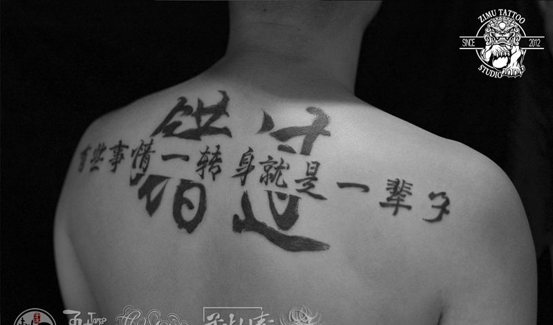 当前位置: 首页 >湖南省长沙市纹身店-子沐刺青艺术纹身工作室纹身图案>汉字错过是过错纹身图片_背部水墨几何纹身图案