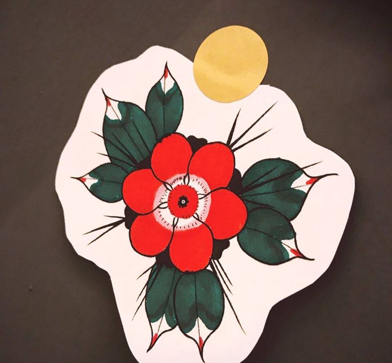 • 手背潮流时尚的玫瑰花眼睛纹身图案