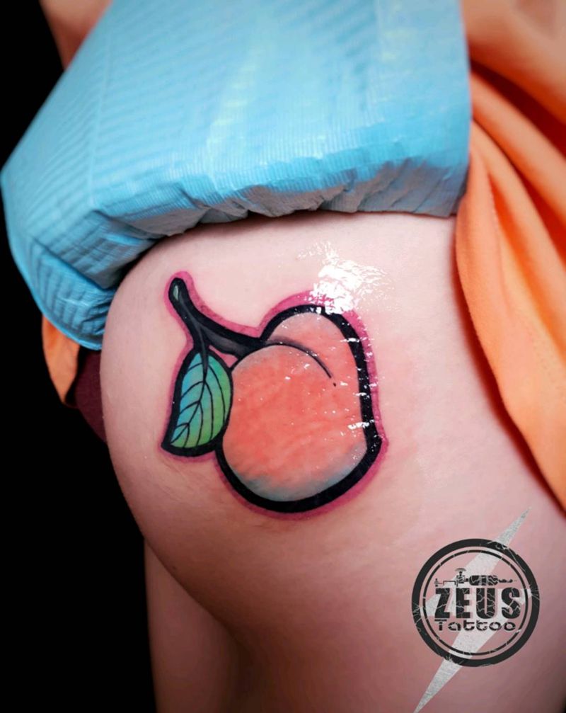 蜜桃臀纹身图片_臀部New School蜜桃臀水蜜桃纹身图案