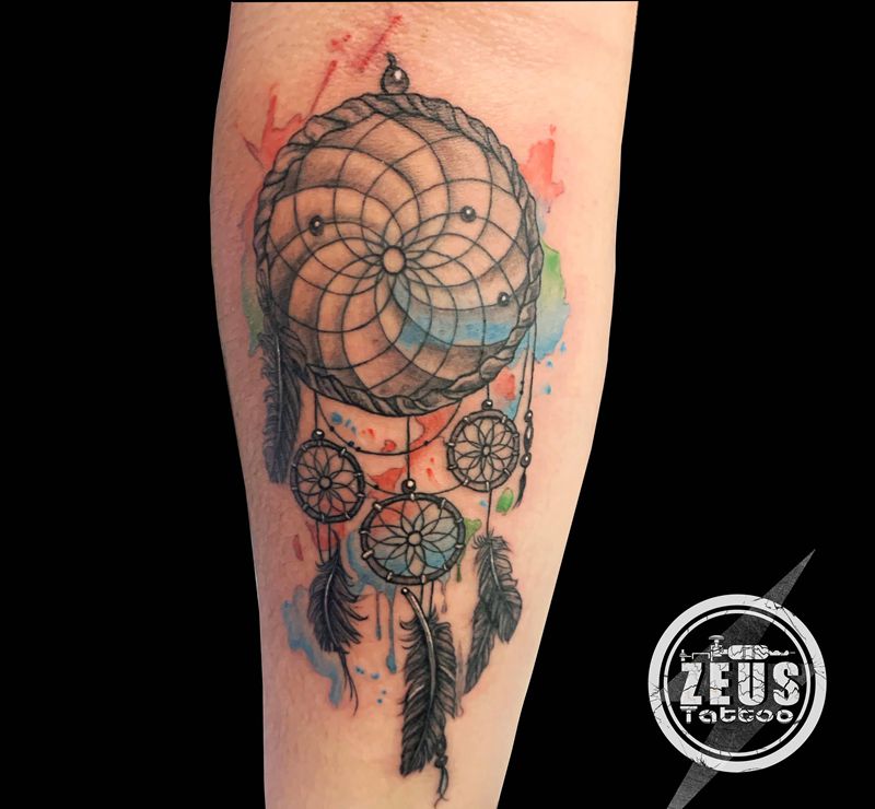 当前位置: 首页 >湖南省长沙市纹身店-十三刺青纹身图案>捕梦网(未完成)纹身图片_手臂New School水彩捕梦网羽毛纹身图案
