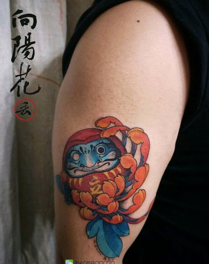 三十而立纹身图片_手臂新传统New School达摩纹身图案