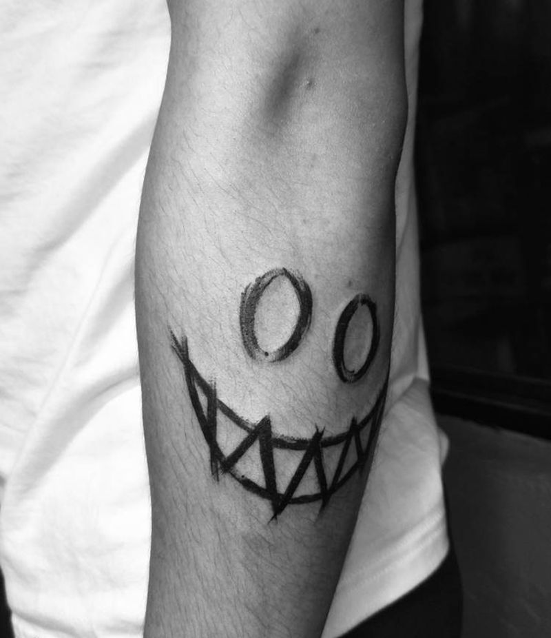 当前位置: 首页 >湖南省长沙市纹身店-长沙向阳花刺青纹身图案>哇哈哈纹身图片_手臂水墨笑脸纹身图案