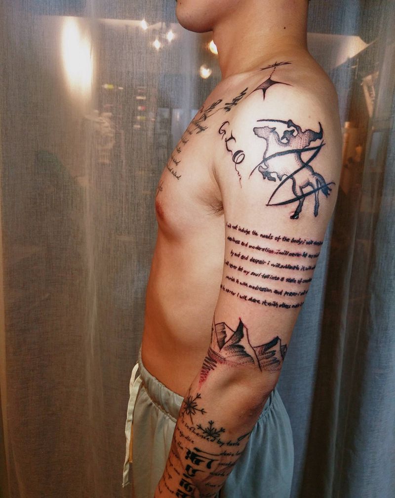 当前位置: 首页 >湖南省长沙市纹身店-长沙向阳花刺青纹身图案>简单的花臂纹身图片_臀部图腾花臂、花腿纹身图案