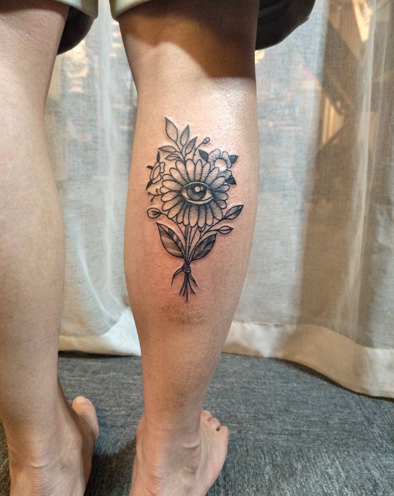 • T网红王老大花腿龙纹身图片_腿部新传统纹身图案
