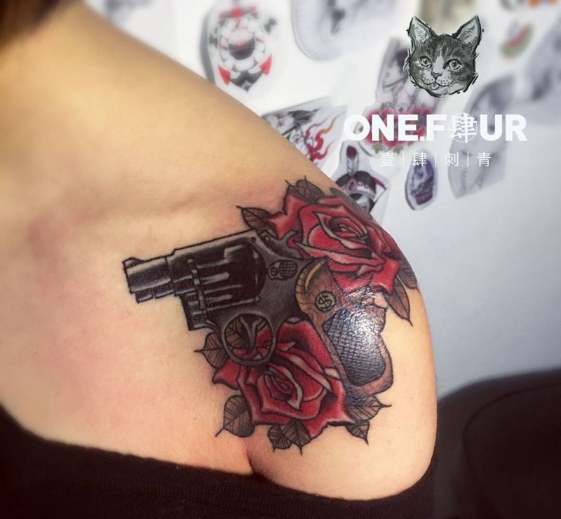 当前位置: 首页 >湖南省长沙市纹身店-catz tattoo纹身图案>枪花纹身图片