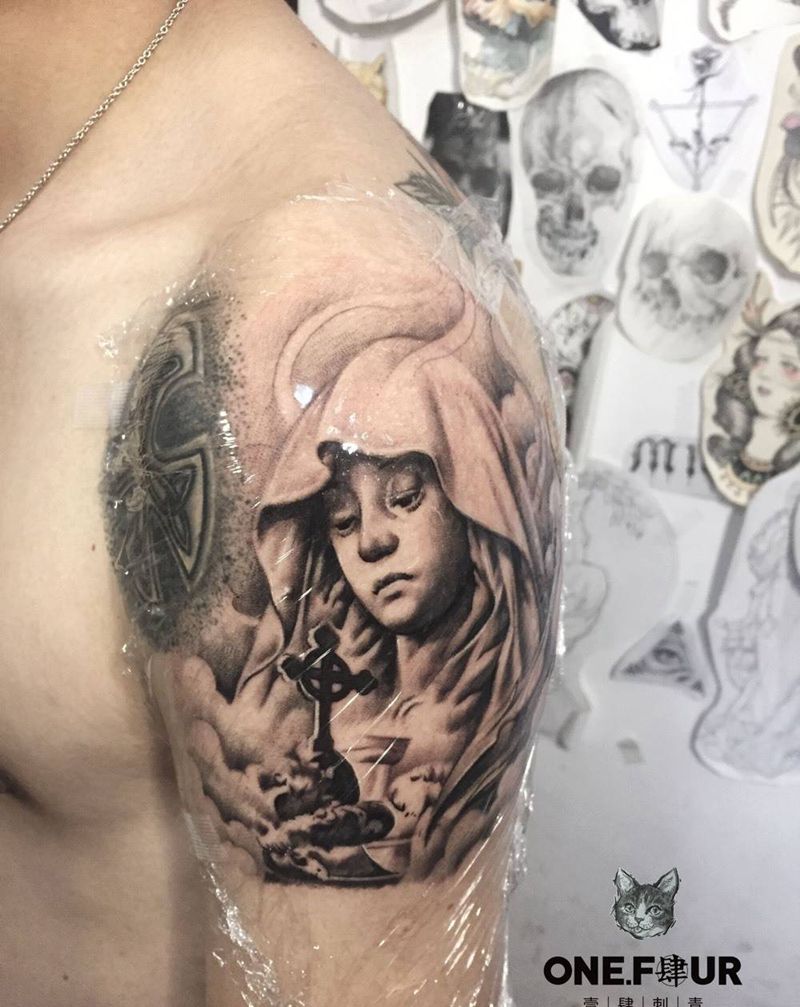 当前位置: 首页 >湖南省长沙市纹身店-catz tattoo纹身图案>圣母纹身图片_肖像欧美写实纹身图案
