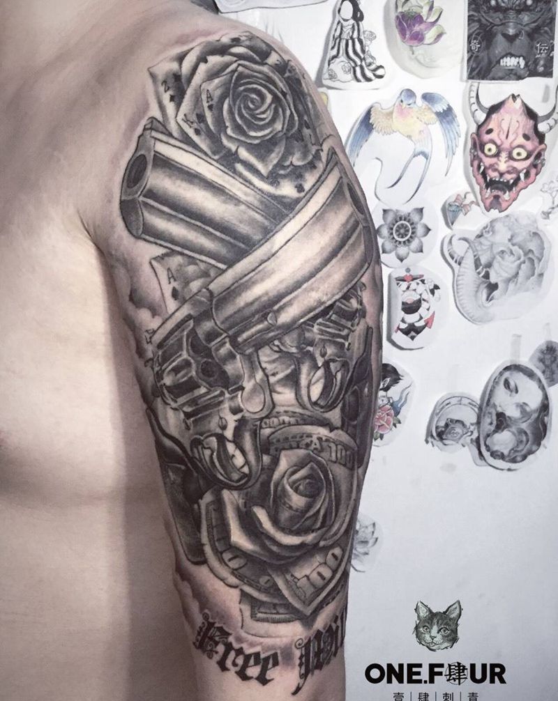 • 纹身吧推荐的披肩图腾半胛纹身图案作品展示
