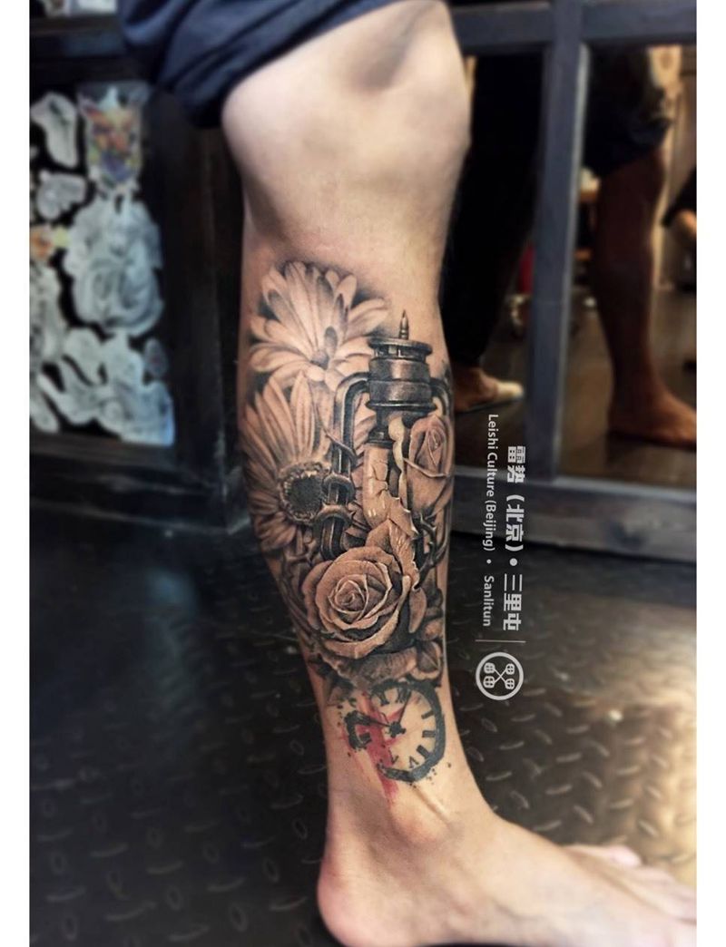 花花花纹身图片_腿部写实欧美原创纹身图案