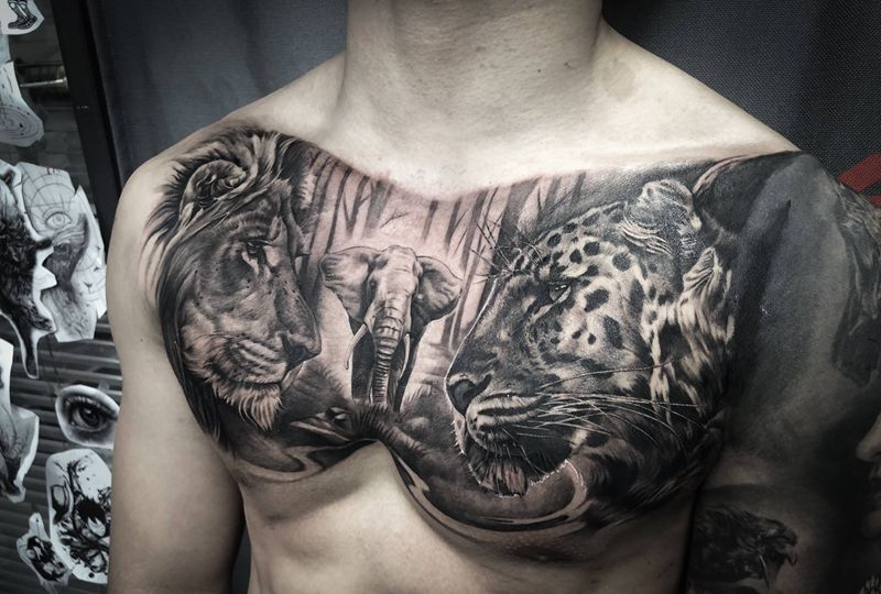 • 男性大花胸_42张优秀的男性大花胸纹身图案图片
