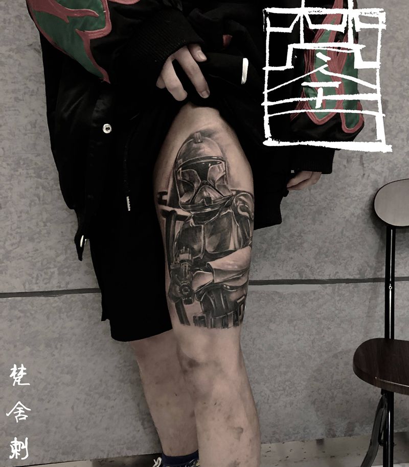 未来战士纹身图片_腿部欧美写实写实未来战士纹身图案