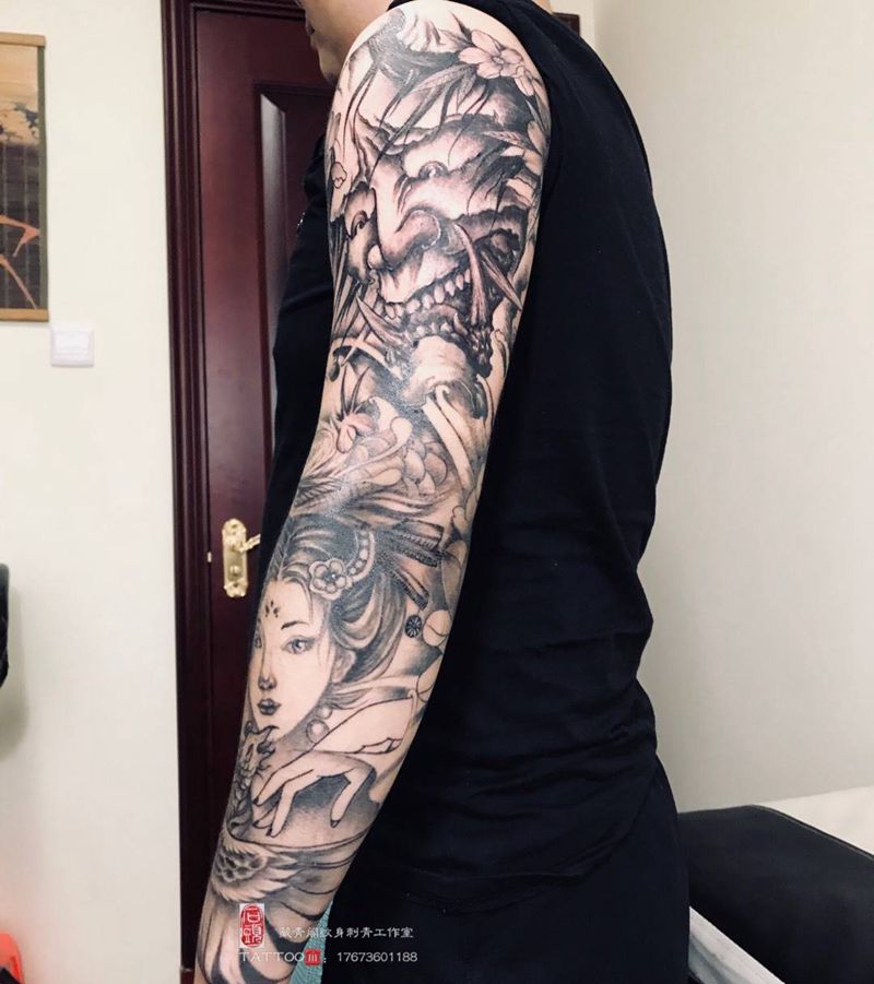 当前位置: 首页 >湖南省长沙市纹身店-藏青阁纹身刺青工作室纹身图案>般若纹身图片_手臂老传统花臂般若纹身图案