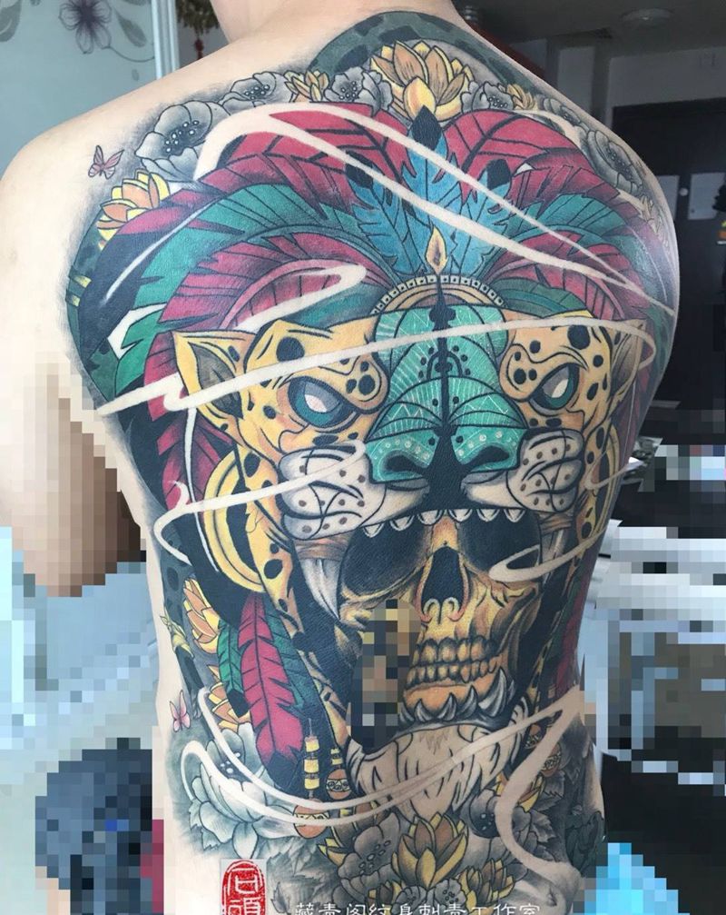 当前位置: 首页 >湖南省长沙市纹身店-藏青阁纹身刺青工作室纹身图案>印第安之王纹身图片_成品背部欧美动物图腾纹身图案