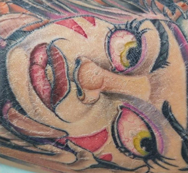 当前位置: 首页 >湖南省长沙市纹身店-长沙亿含刺青纹身图案>newschool纹身图片_腿部New School纹身图案