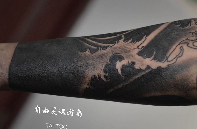 黑灰满背纹身图案