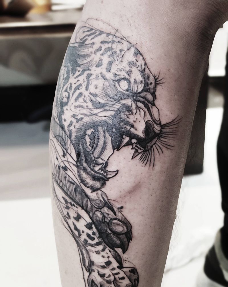 当前位置: 首页 >湖南省长沙市纹身店-环宇刺青纹身图案>豹子纹身图片_腿部线条素描纹身图案