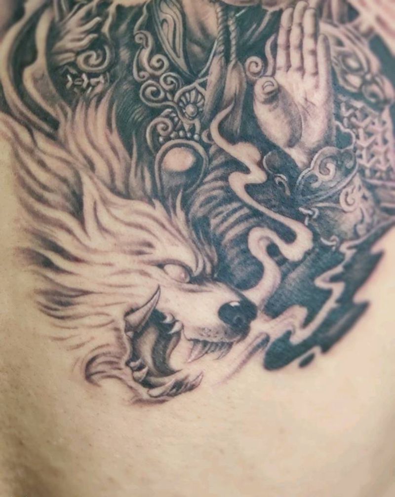 • 纹身吧推荐的披肩图腾半胛纹身图案作品展示