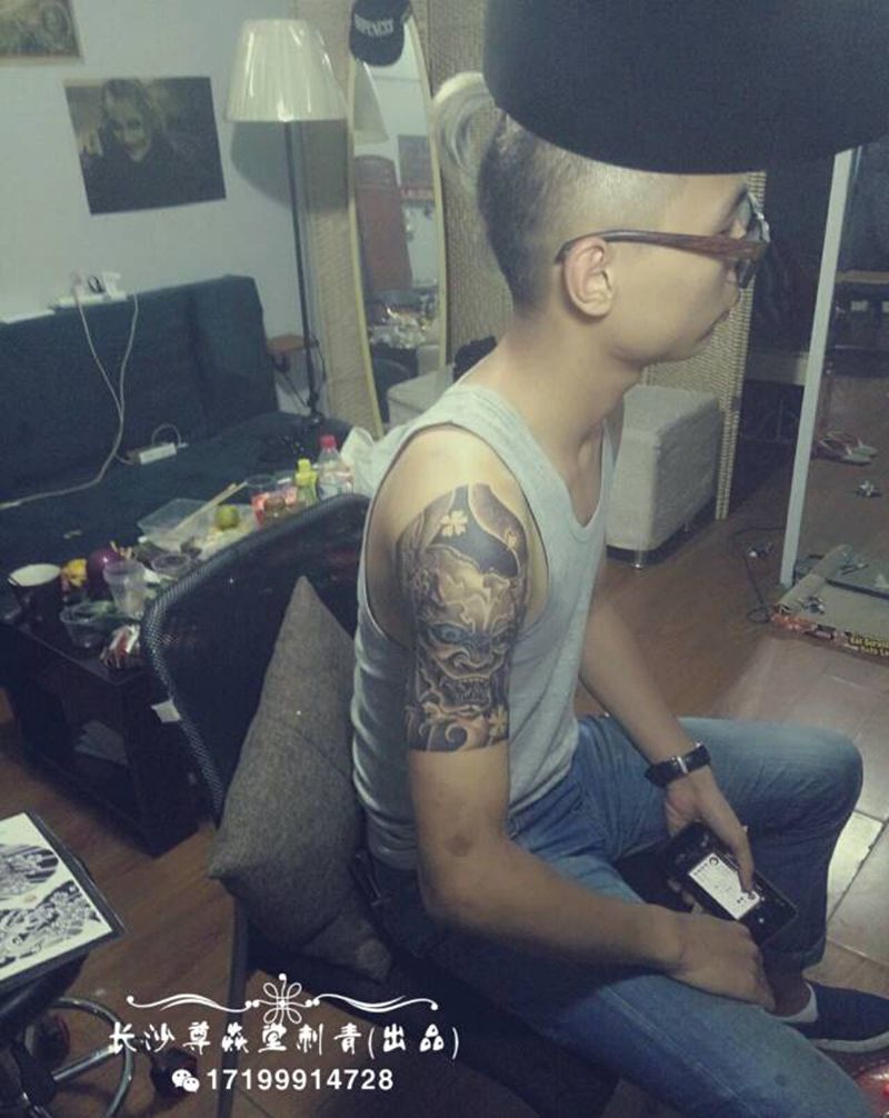 当前位置: 首页 >湖南省长沙市纹身店-乾瑶墨刻纹身店纹身图案>日式般喏纹身图片_手臂传统人物鬼神成品纹身图案
