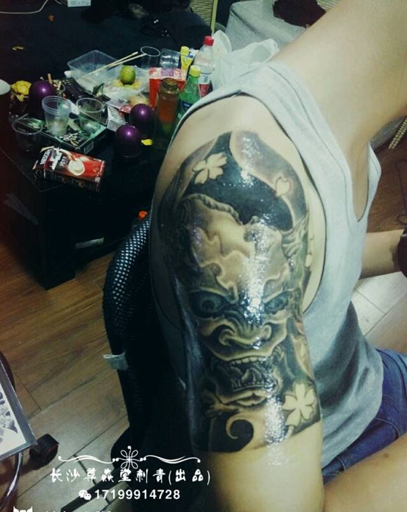 当前位置: 首页 >湖南省长沙市纹身店-乾瑶墨刻纹身店纹身图案>日式般喏纹身图片_手臂传统人物鬼神成品纹身图案