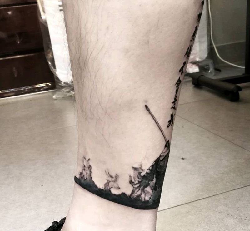 • T包小腿吹火男+阿多福纹身图片_腿部老传统新传统吹火男阿