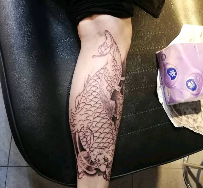 当前位置: 首页 >湖南省衡阳市纹身店-睿刺青艺术工作室纹身图案>小腿鲤鱼未完成纹身图片