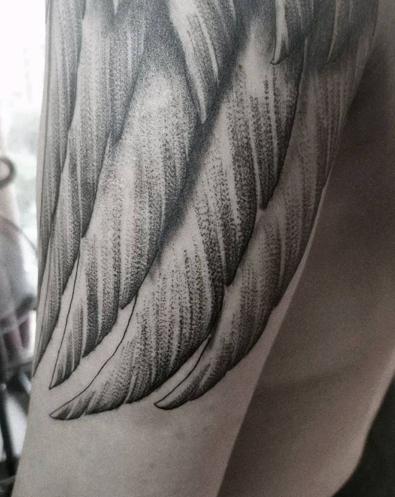 大翅膀纹身图片_背部点刺欧美写实纹身图案