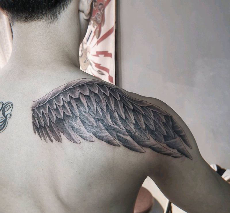 翅膀纹身图片_肩部欧美写实纹身图案