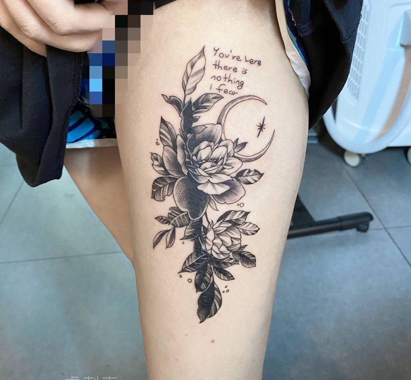 素花遮盖纹身图片_腿部纹身图案